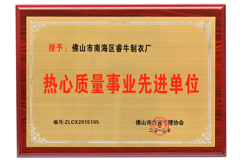 熱心質(zhì)量事業(yè)先進(jìn)單位 -