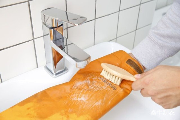 3、使用大量的清水進行漂洗,一定要將洗滌劑徹底漂洗掉;對于局部頑漬可以用海綿或棉布直接蘸適量洗滌液擦拭。用中性洗滌劑的洗滌過程中不必擔心傷及皮膚,清洗之后漂洗至水清即可。